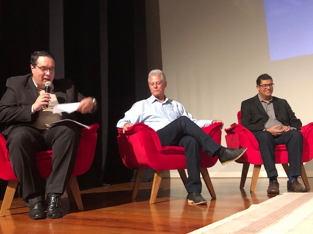 Na sequência foi realizada a mesa de debates tendo como mediador o superintendente do Grupo Unis, Guaraci Silva. Ele recebeu os convidados Marcos Pascoalino, prefeito de Rio Pomba; o jovem empresário Eduardo Yep, a empresária do setor de varejo, Luíza Perez Lanna; o Analista do Sebrae-MG, Paulo César Barroso e o presidente da Energisa Minas Gerais, Eduardo Mantovani. Cada um falou sobre propostas para o desenvolvimento da região e ainda responderam perguntas da plateia.