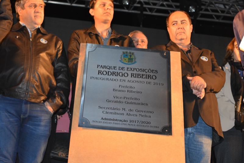 O descerramento da placa alusiva ao novo recinto aconteceu em cima do palco, pouco antes do show, e nela está escrito o seguinte: “Parque de Exposições Rodrigo Ribeiro” Inaugurado em agosto de 2019 – Prefeito: Bruno Ribeiro, Vice-prefeito: Geraldo Guimarães; Secretário M. de Governo: Clemilson Alves Neiva, Administração 2017/2020 “Novas ideias para uma nova Astolfo Dutra”. A solenidade foi aberta com a execução do Hino Nacional brasileiro e, em seguida, o presidente da Câmara Municipal de Astolfo Dutra, vereador Reginaldo Cebolinha, fez um breve pronunciamento em que destacou o esforço do prefeito Bruno em trazer de volta a exposição para o município.