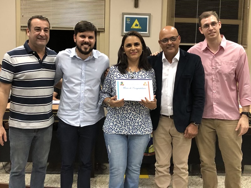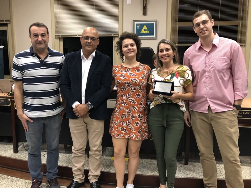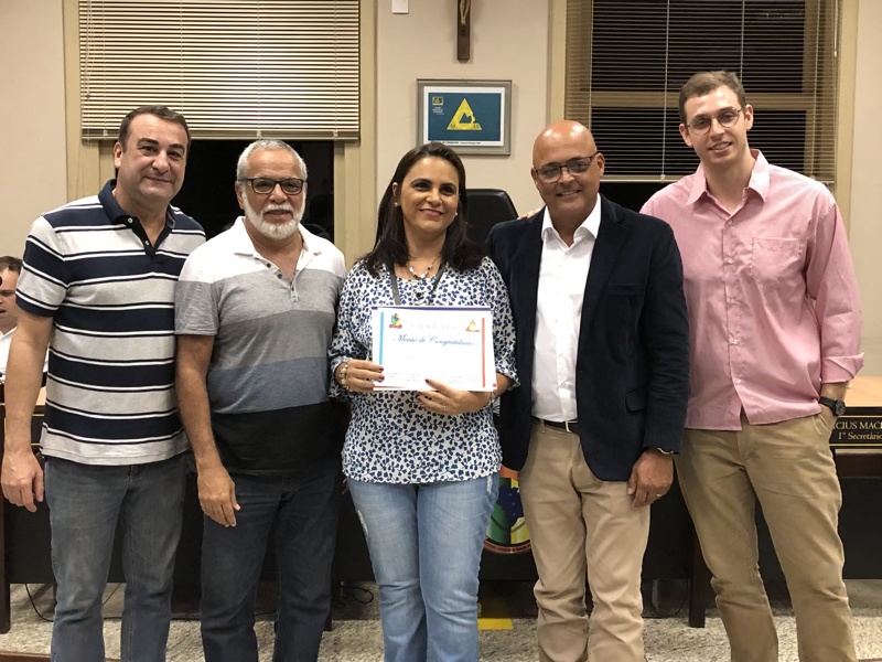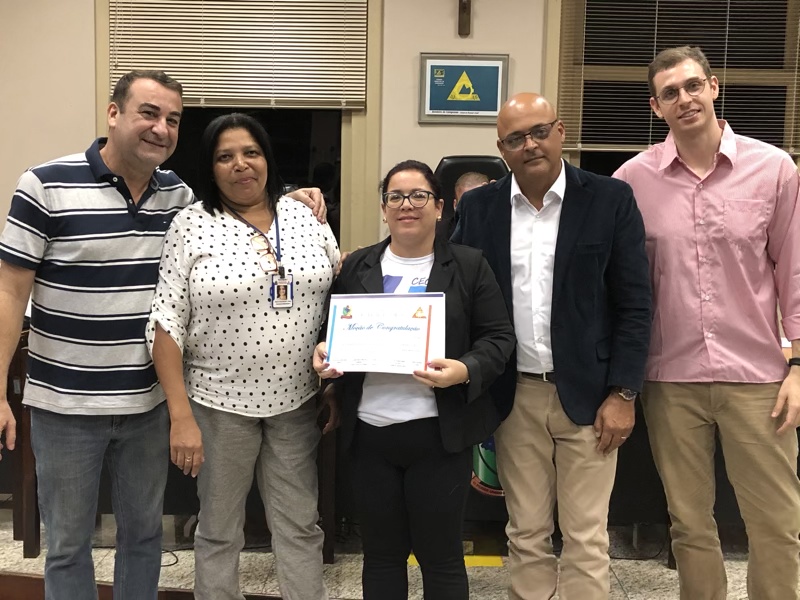 – Professoras Cíntia de Souza Cardoso e Lêda do Nascimento Rosa recebeu uma placa de prata pelos trabalhos voluntários nas correções das redações.