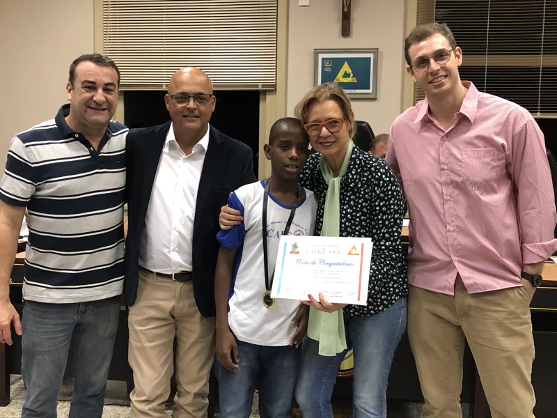 Já o vereador Rogério Ladeira destacou o convite feito a todas as escolas com turmas do sexto ao nono ano, “e sete delas aceitaram o nosso convite, sendo quatro particulares, duas municipais e uma estadual”, lembrou. De acordo ainda com aquele vereador, o concurso recebeu 35 redações sendo que os três primeiros colocados receberam como prêmio um notebook (1º lugar), um telefone celular (2º colocado) e um tablet para o terceiro colocado. Rogério explicou também que a comissão responsável pelo concurso premiou com medalhas de ouro outros dez alunos cujas redações também se destacaram. O trabalho de correção dos textos contou com profissionais da área, acrescentou Rogério.