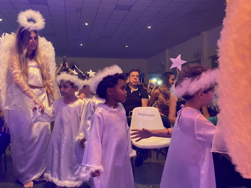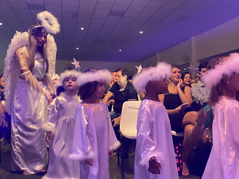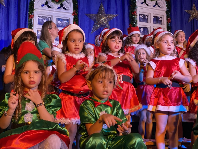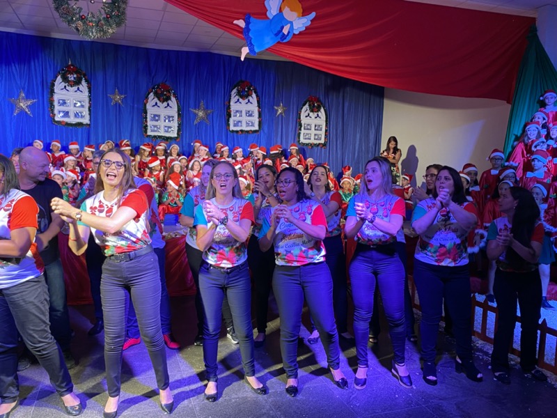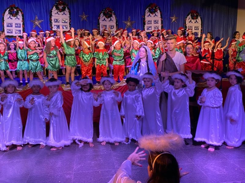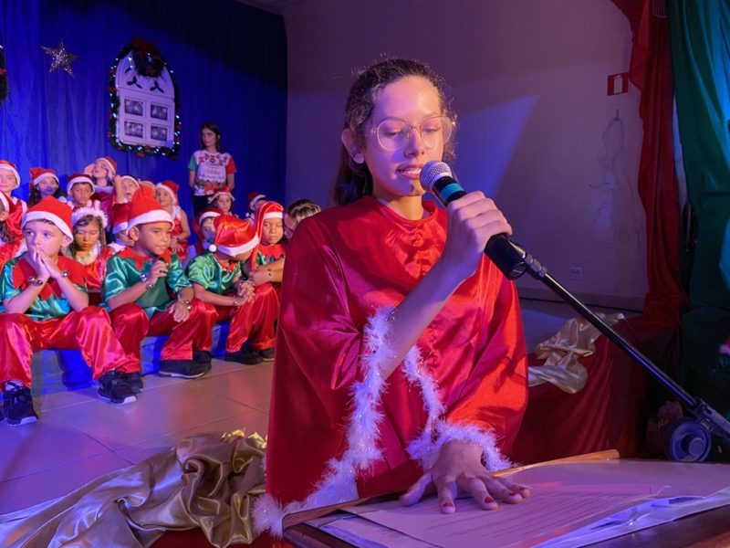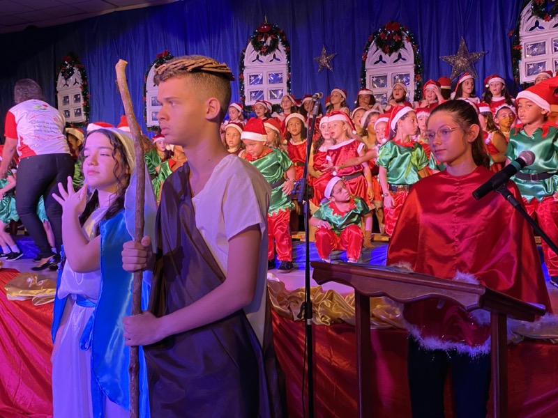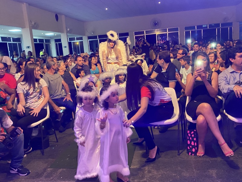 Sandra, que em diversos momentos se emocionou, agradeceu a Deus pelo ano que está terminando. “Enfrentamos dificuldades, mas também tivemos alegrias e o Colégio agradece por mais um ano letivo. E também desejo aos meus alunos do terceiro ano do Ensino Médio, que agora se preparam para começar uma nova vida, muito sucesso. Estudem, se formem e voltem para cá porque amo vocês”, disse. Em seguida, as crianças ocuparam os três palcos montados no local, sendo o da direita exclusivo para um grupo de crianças que apresentou algumas músicas na flauta doce. O da esquerda, por sua vez, recebeu os adolescentes que formaram um coral bastante afinado, e o do centro e maior, as crianças das séries iniciais, a principal atração da noite e que deixaram todo o público encantado com suas performances.