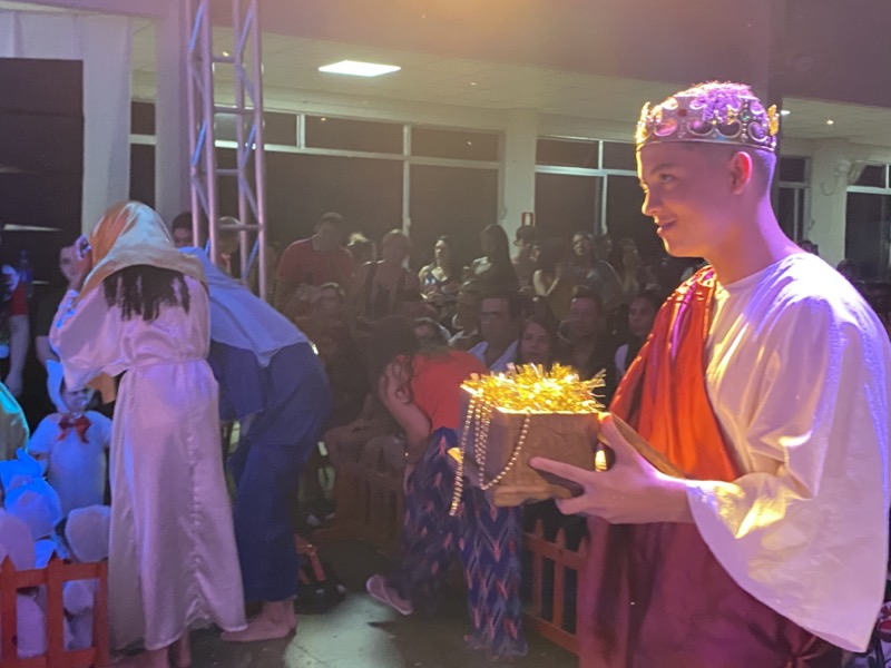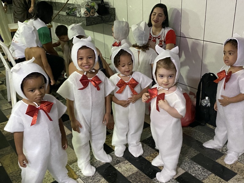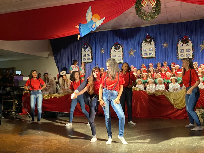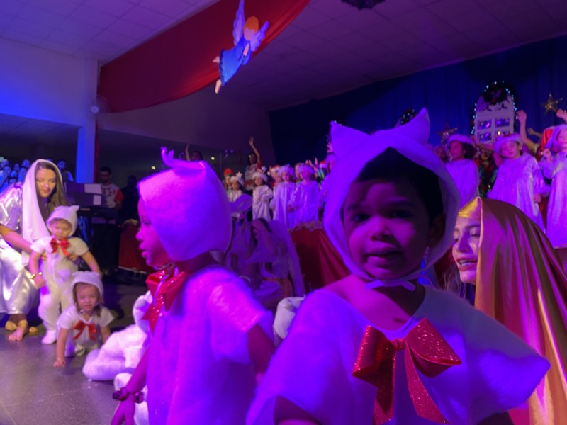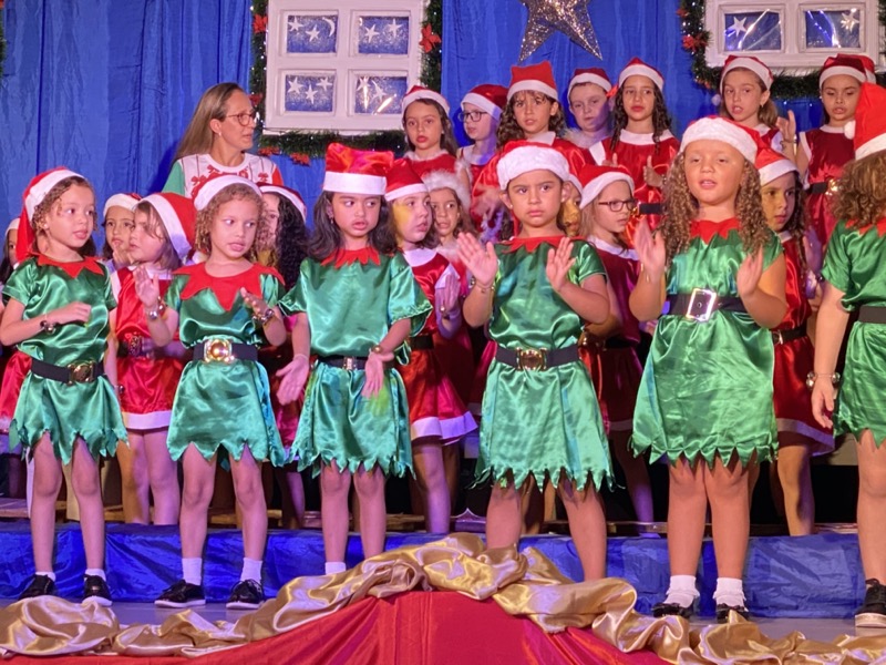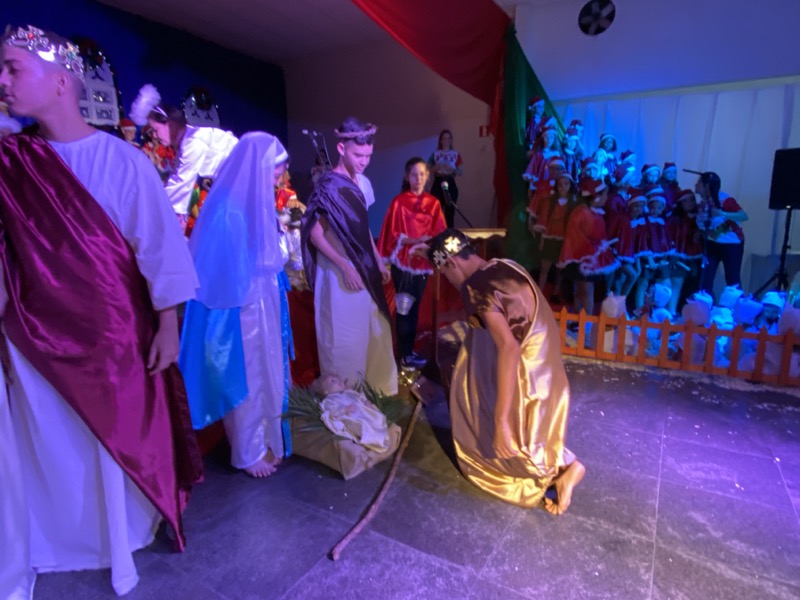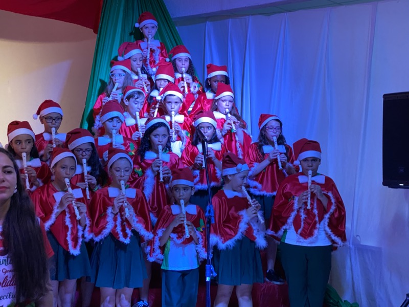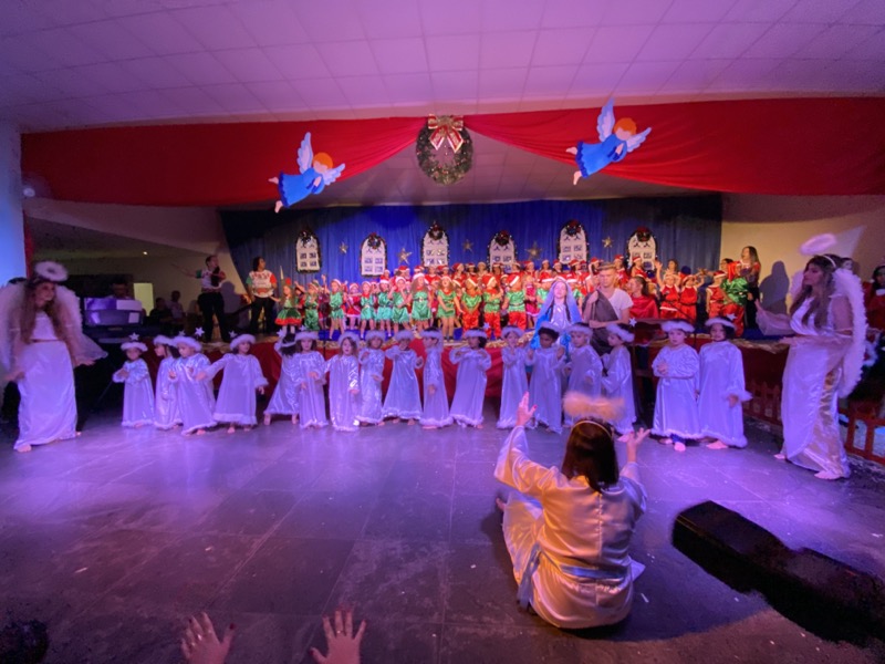 Sandra, que em diversos momentos se emocionou, agradeceu a Deus pelo ano que está terminando. “Enfrentamos dificuldades, mas também tivemos alegrias e o Colégio agradece por mais um ano letivo. E também desejo aos meus alunos do terceiro ano do Ensino Médio, que agora se preparam para começar uma nova vida, muito sucesso. Estudem, se formem e voltem para cá porque amo vocês”, disse. Em seguida, as crianças ocuparam os três palcos montados no local, sendo o da direita exclusivo para um grupo de crianças que apresentou algumas músicas na flauta doce. O da esquerda, por sua vez, recebeu os adolescentes que formaram um coral bastante afinado, e o do centro e maior, as crianças das séries iniciais, a principal atração da noite e que deixaram todo o público encantado com suas performances.