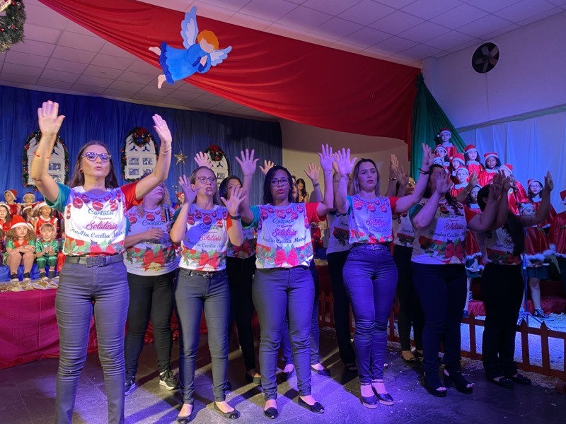 Uma noite de música, encanto, fortalecimento do sentimento de solidariedade e de união. Este é o resumo, em poucas palavras do que foi a 8ª Cantata de Natal do Colégio Cecília Meireles. O evento aconteceu na noite desta quinta-feira, 28 de novembro, a partir das 19 horas e mobilizou toda a comunidade daquela escola, especialmente os alunos, que foram os atores principais do evento. Diretoria, professores e demais funcionários também tiveram participação de destaque e, num gesto de união, levaram a mensagem de amor, fé e gratidão a um público que lotou o salão social do Clube do Remo. O evento ainda contou com doação de alimentos que serão destinados à entidades beneficentes do município.