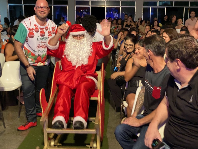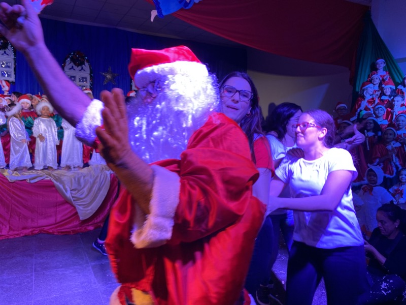 A plateia também participou cantando refrões de algumas canções e assistiu ao nascimento do Menino Jesus, em uma encenação repleta de simbolismos e emocionante. As músicas se alternavam no palco, e uma das interpretações surpresa da noite foi a de abertura feita pelo corpo de funcionários do Colégio Cecília Meireles. Eles fizeram uma adaptação da música “We are the world”, que fez sucesso no mundo inteiro, e a cantaram em português reservando o final para a interpretação com a letra original. No encerramento, mais uma surpresa: a chegada do Papai Noel, que deixou as crianças com os olhos brilhando ainda mais. O Bom Velhinho desceu de seu trenó para abraçar os meninos e lhes deu balas, tudo ao som da música “Anoiteceu”. A festa terminou neste clima de encantamento e alegria. Em 2020, promete emoções ainda mais fortes.
