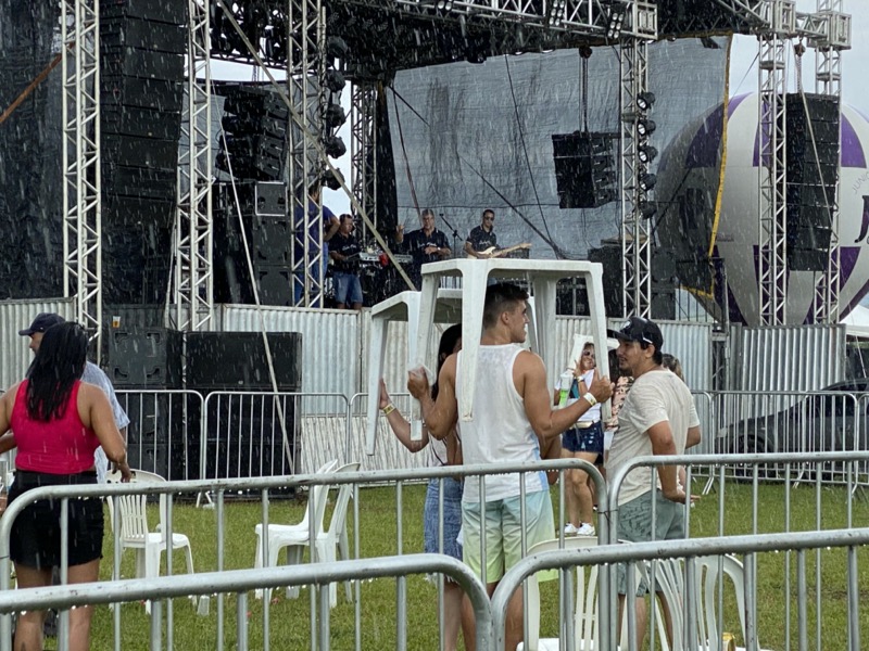 O evento, por conta desse temporal, quase foi encerrado ali, antes do show de Beto Kauê, mas a equipe de Paulo Boy, responsável pelo som, e ele próprio, com muita competência e profissionalismo, não deixaram a peteca cair e colocaram tudo para funcionar novamente assim que a chuva ficou branda. E desse modo, Beto Kauê fez seu show sem qualquer problema no som ou na luz. A apresentação do cantor e compositor que é sinônimo de Carnaval para grande parte dos mineiros, deu saudade naqueles que já curtiram a festa de Momo sob a voz de Beto Kauê na praia de Piúma. A água que caía servia como uma espécie de energético para o público que não arredou pé e ficou com ele cantando e dançando os maiores sucessos da axé music até o último acorde.